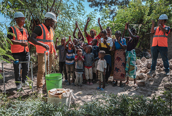 6月13日,在坦桑尼亚姆万扎省米松圭,中土东非有限公司员工接通水管后赢得当地居民鼓掌欢呼。新华社记者 王冠森 摄