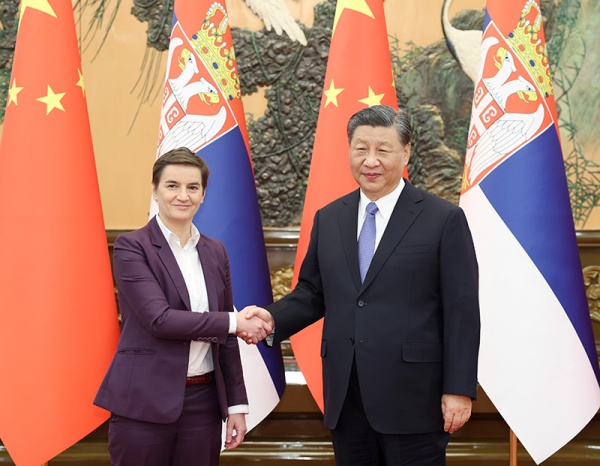 11月6日下午,国家主席习近平在北京人民大会堂会见塞尔维亚总理布尔纳比奇。新华社记者 张领 摄