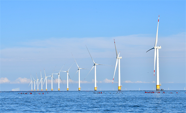 2023年9月13日拍摄的辽宁大连庄河海上风电项目。新华社记者 杨青 摄