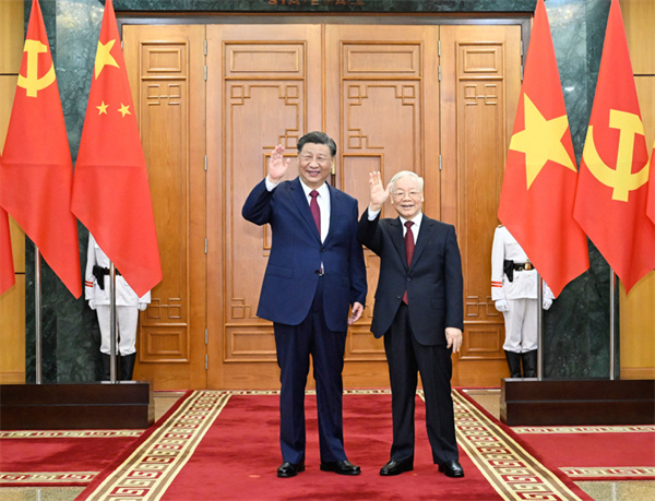 习近平强调,中越两国在各自争取国家独立和民族解放斗争中相互支持,在彼此改革开放和革新事业中互学互鉴,“越中情谊深、同志加兄弟”是中越关系最生动写照。中方始终从战略高度和长远角度看待中越关系。当前,世界之变、时代之变、历史之变正以前所未有的方式展开。中越两党作为世界前两大执政的共产党,都坚持和发展马克思主义,都坚定不移走社会主义道路,都在领导各自国家进行社会主义建设,更应该从壮大世界社会主义力量和确保各自社会主义建设事业行稳致远的高度,把握中越关系的特殊战略意义,扎实推进中越命运共同体建设。相信在双方共同努力下,中越关系将进入政治互信更高、安全合作更实、互利合作更深、民意基础更牢、多边协调配合更紧、分歧管控解决更好的新阶段,中越两国社会主义建设事业将不断取得新成就,并为地区乃至世界稳定、发展、繁荣作出新贡献。