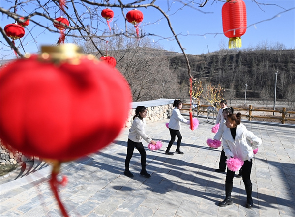 甘肃省定西市渭源县元古堆村村民在排练节目(2023年1月10日摄)。新华社记者 范培珅 摄