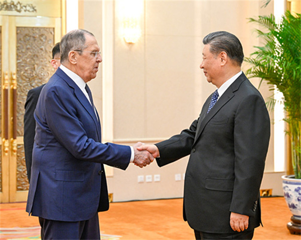 4月9日下午,国家主席习近平在北京人民大会堂会见俄罗斯外长拉夫罗夫。新华社记者 丁林 摄