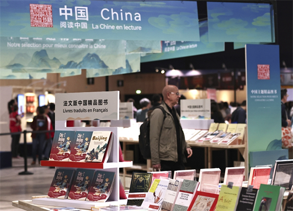 这是2024年4月12日在法国巴黎临时大皇宫举行的2024巴黎书展上拍摄的中国图书展区一角。新华社记者 高静 摄