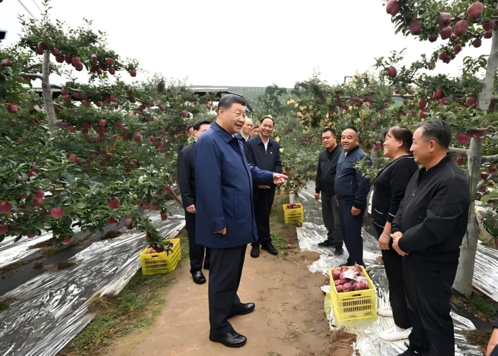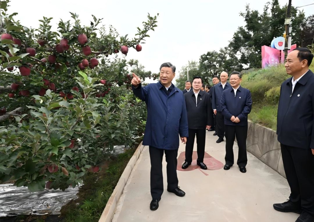 11日上午,习近平总书记来到甘肃天水市麦积区南山花牛苹果基地考察,走进果林向现场的果农、农技人员等详细询问花牛苹果品质特色、种植技术、市场销路等,并同乡亲们亲切交流。习近平说,乡村振兴要靠产业,各地要各展其长,走适合自己的振兴道路。习近平勉励乡亲们再接再厉,把苹果产业做得更大更强,过上更加幸福的生活。
