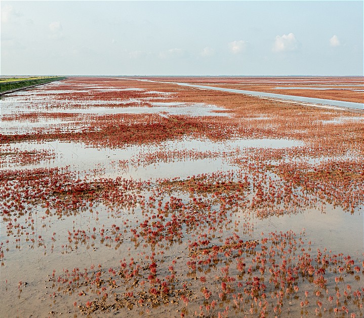 坚持生态导向,扎实推进海域生态治理。2019年开始组织实施渤海综合治理攻坚战海洋生态修复项目,目前已完成围海养殖池塘拆除545公顷,实现了区内围海养殖清零,通过池塘拆除恢复生态岸线5.3千米。模拟自然落种的种植方法,每年1-3月份人工播撒盐地碱蓬种子10余万公斤,修复盐地碱蓬面积1705公顷,逐步恢复了沿海红滩湿地景观。这种方法充分利用了冬季黄河浮冰为近海滩涂提供的持久的淡水覆盖条件,降低了土壤盐碱化程度,2月中旬盐地碱蓬开始萌发,具有同类海湾的可复制性。