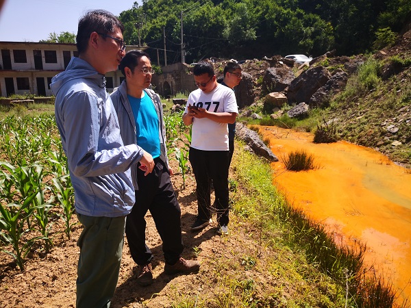 7月7日,调研组先后对临汾市3处历史遗留矿山进行现场检查,重点对酸性废水的种类类型、时空分布、周边影响及汇集入河等情况开展调研,通过访谈、观测、无人机航拍等手段掌握矿山酸性废水基本信息,沟通了解酸性废水调查与治理进展,全面掌握山西省历史遗留矿山酸性废水的总体情况。