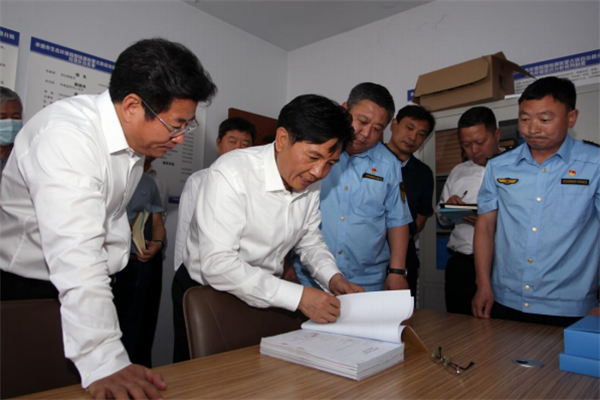 在承德市,孙金龙围绕基层生态环境部门队伍建设和履职能力面临的矛盾和问题,以解剖麻雀方式开展调研。孙金龙深入基层生态环境部门,现场察看监测实验室仪器设备配备情况,调阅行政处罚案件案卷,详细了解生态环境执法、监测人员培养和能力建设工作,走进相关处室,与工作人员亲切交谈,关心询问大家工作生活情况。