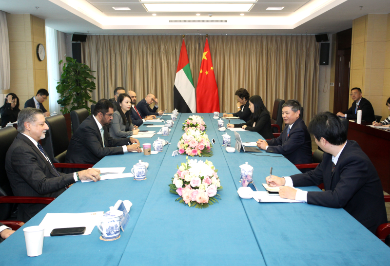 10月17日,生态环境部部长黄润秋在京会见《联合国气候变化框架公约》第二十八次缔约方大会(COP28)候任主席、阿联酋气候变化事务特使苏尔坦。双方围绕共同推动COP28取得成功交换意见。