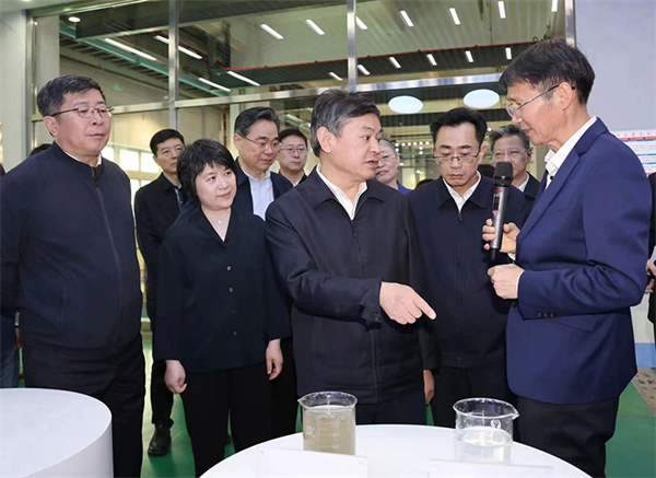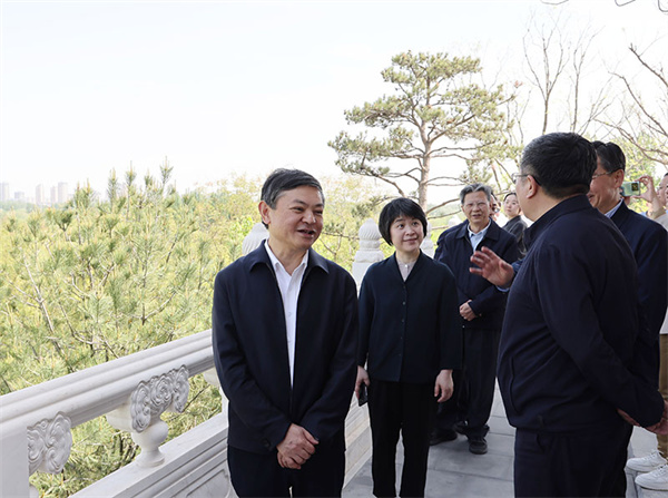 春染大地、绿意盎然,黄润秋来到城市绿心森林公园,听取城市副中心生态环境保护总体情况介绍,看到昔日的化工厂变为“城市绿心”,他对此表示肯定。黄润秋指出,要强化土壤污染风险管控,定期开展监测,全面落实安全利用和严格管控措施。要加强生态保护和修复,正确处理自然恢复和人工修复的关系,做到扩绿、兴绿、护绿并举,打造更加美丽宜居的城市副中心,不断增强人民群众生态环境获得感、安全感、幸福感。