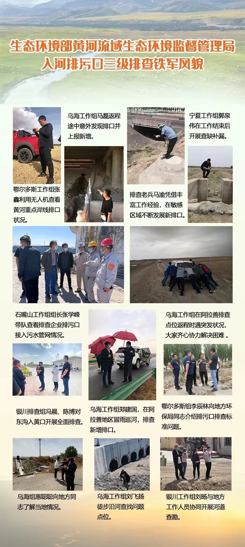 5月14日,宁夏、内蒙古境内排查任务全面完成。此时,一线工作人员原计划5-7天的出差时间,已延长至22天,衣物晚上洗、白天穿,时间不断推移,任务不断增加,没有人叫苦,没有人抱怨,在母亲河畔,以磐石般坚强的勇毅默默诠释着生态环保人守护其健康的初心和信念。