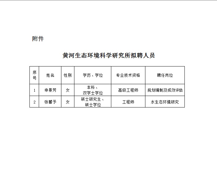 附件:黄河生态环境科学研究所拟聘人员